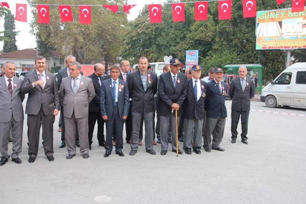 Geyve Cumhuriyet Meydanında düzenlenen programa; Geyve Kaymakamı İdris Akbıyık, Geyve belediye başkanı Murat Kaya, Jandarma Bl. Kom. Yüzbaşı Lütfü Varol, daire amirleri, Muharip Gaziler, Geyve Milis Kuvvetleri, öğretmenler ve öğrenciler katıldı. Başta Geyve Kaymakamı İdris Akbıyık olmak üzere tüm daire amirleri, gazilerle tokalaşıp özel ilgilendiler.