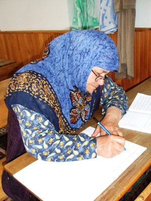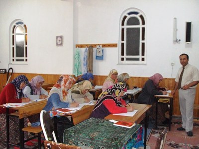 Kur'an Kursu dersliğindeki kursa 45 ve 65 yaşları arasında 12 bayan katılıyor.