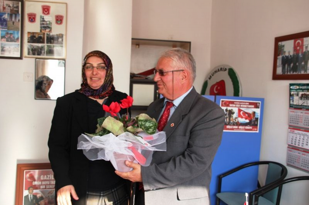 Başkan Gökdemir ziyareti sırasında Başkan Uysal’a çiçek hediye sundu.