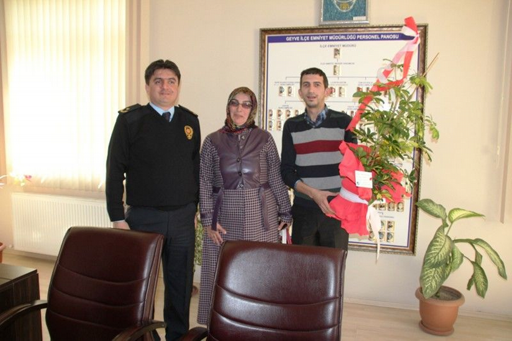 AK Parti, Geyve AK Kadın Kolları Başkanı Aynur Gökdemir, AK Parti Gençlik Kolları başkanı Yunus Emre Yar ve Parklar Bahçeler Müdürü Soner Özel, Geyve Emniyet Müdürü Halil Bayar’ı makamında ziyaret ederek kendilerine çiçek takdim etti.