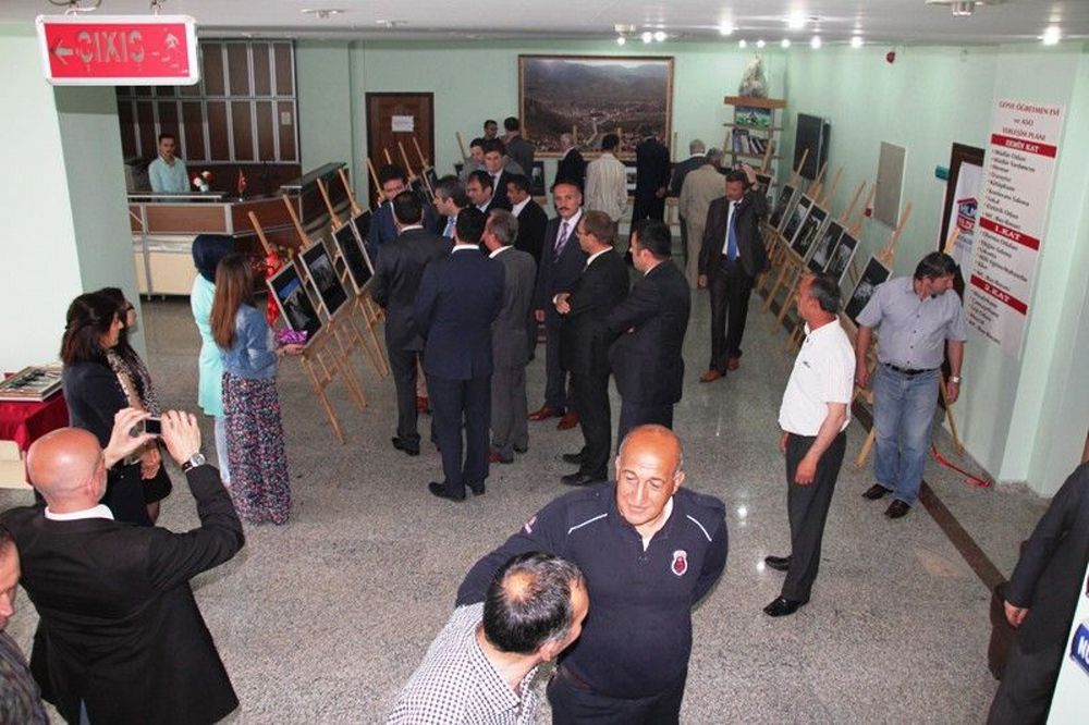 Fotoğraf sergisinin açılış kurdelesini İlçe Kaymakamı İdris Akbıyık ile birlikte Cumhuriyet savcısı Kürşat Kendir, Hâkimler Aydın Kara ile Ekrem Karadere ve iş adamı İrfan Yıldız birlikte kesti.