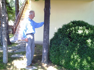 Cemil İZMİRLİ,alçak rakımda yetişmeyen iki Gürgen(Kayın)ağacından birinin önünde