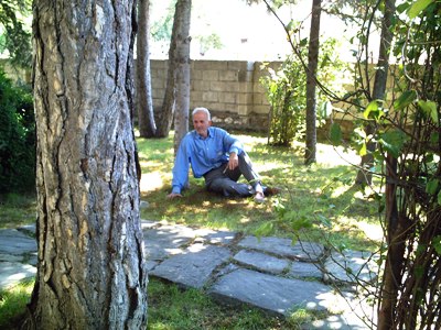 Cemil İZMİRLİ(62)evinin önündeki bahçesinde