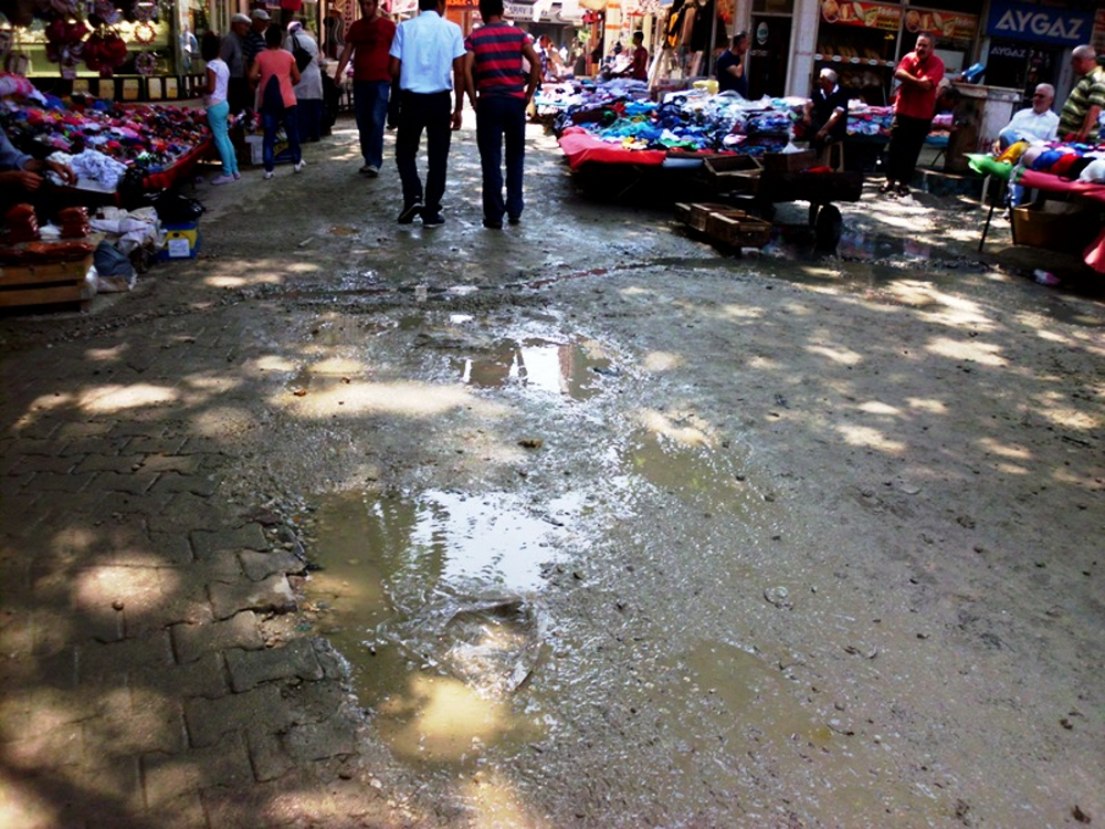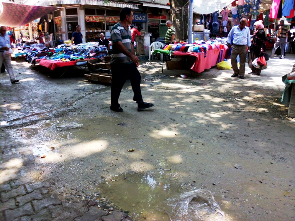 Her zaman sergi kurduğu yere sergi açmak isteyen pazarcılar ile vatandaş nereden geldiği belli olmayan ve hastalığa davetiye çıkaran atık suların içinde sergi açıp gezinmek zorunda kalınca isyan etti.