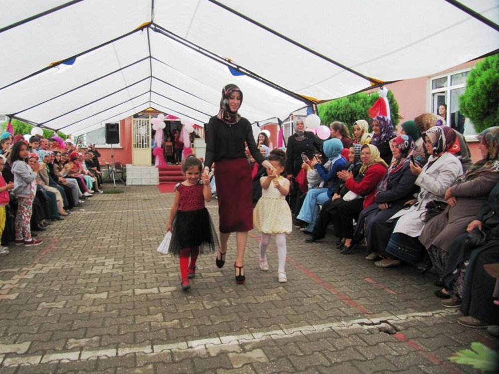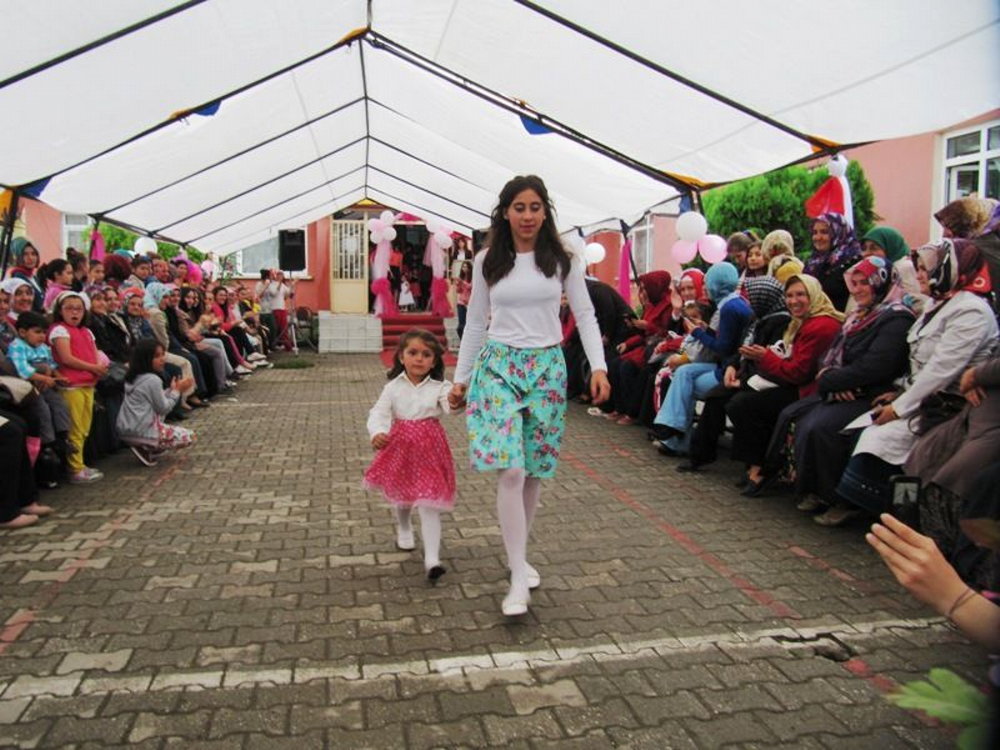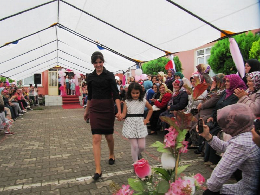Bir grup öğrenciye temsili olarak diplomaları verildi. Öğrenciler kendi diktikleri elbiseleri defilede giyip seyircilerden bol bol alkış aldı.