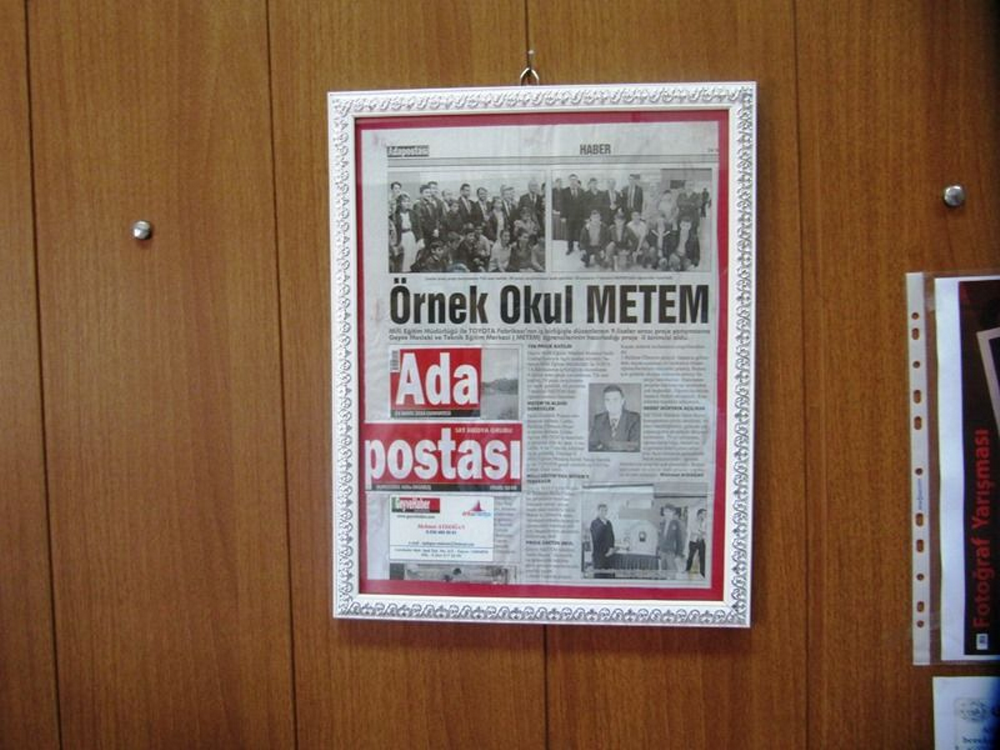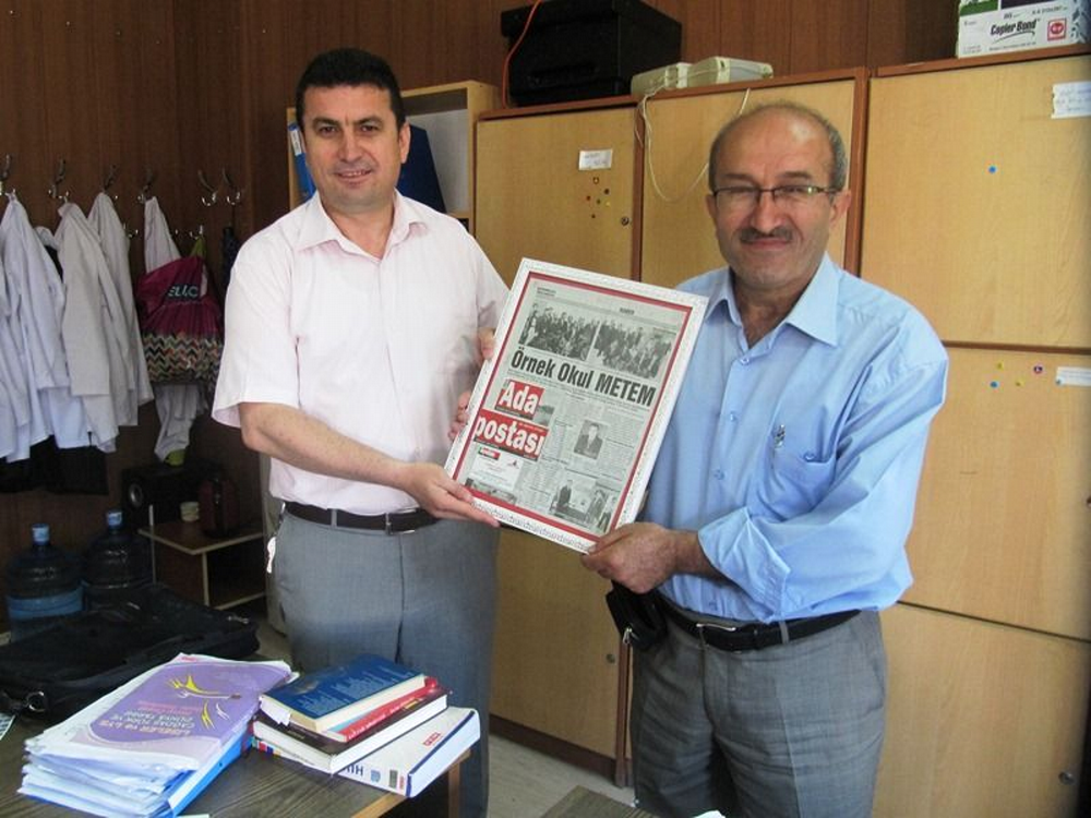 Geyve Haber temsilcisi Mehmet Aydoğan, Adapostası gazetesinde çıkan Örnek Okul haberini çerçeve yaptırarak, okul öğretmenlerinin huzurunda METEM müdürü Tekin Bayer’e verdi. Okul müdürü Tekin Bayer basına teşekkür etti.