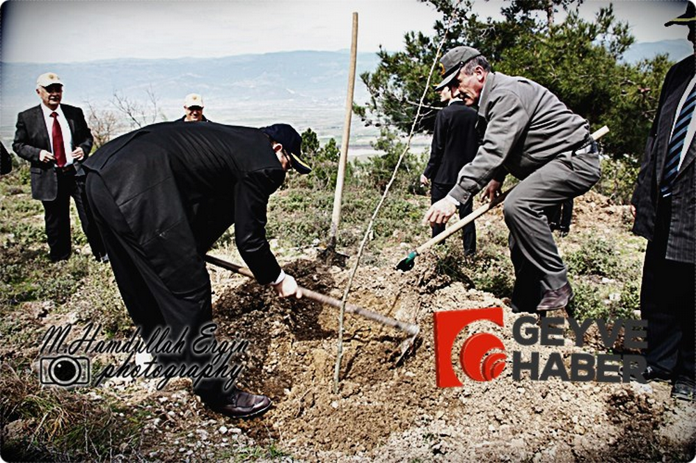 Geyve Orman İşletme Müdürü Mustafa İşçioğlu: “2016 yılı Bakanlık tarafından ÇINAR YILI ilan edildi. Kırklareli-Edirne-İstanbul-Kocaeli-Sakarya-Bilecik-Bursa illerini kapsamak üzere bu illerin dâhilinde 200 bin adet çınar fidanı dikilecek. Niye çınar dersek; çınarın uzun ömürlü olması, Osmanlının kuruluşundan bu yana sembol ağaç olması. Osmanlı geçtiği her yere nişan olarak çınar dikmiş. Edirne İli ile Bilecik İli arasında bir çınar yolu yapılması düşünülüyor. Bizde bu yolun tam ortasındayız. Bu uygulamaya biz geçen yıl başlamış idik. Bizler de bu yıl 1000 adet çınar fidanı dikerek projeye destek olacağız. İlk çınarımızı da Geyve Kaymakamı İlyas Memiş’in de katıldığı bir program ile diktik. 5 bin köye, 5 bin orman projesi ile köylerimize gelir getirmeye yönelik kestane, ceviz, ıhlamur, fıstık çamı, zeytin türlerinde ağaçlandırmalar yapıyoruz. Bizler bu fidanları diktiriyoruz, 2 yıl bakımlarını yaptırıyoruz ve kura ile köylülerimize dağıtıyoruz ve sertifikalarını veriyoruz. Daha sonra bakımı köylülere ait oluyor ve gelirlerinin tamamı da köylüye kalıyor. Alifuatpaşa İşletme Şefliği sahasında Eşme üzerinde 16 hektar saha ağaçlandı, Akdoğan-Karacaören-Halidiye-Taşoluk Mahallelerinde de ağaçlandırma yapıldı.”şeklinde konuştu.
