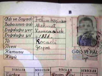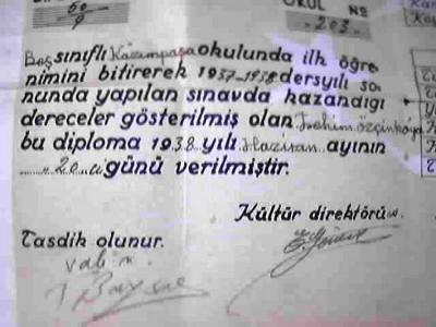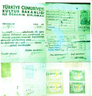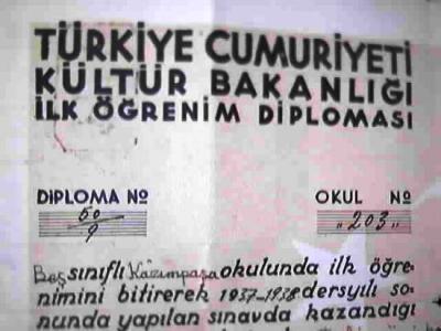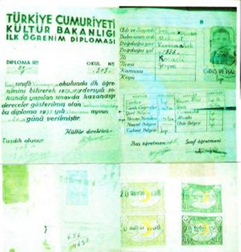 TÜRKİYE CUMHURİYETİ KÜLTÜR BAKANLIĞI İLK ÖĞRENİM DİPLOMASI, GEYVE-Kazımpaşa Okulundan alınmış diploma