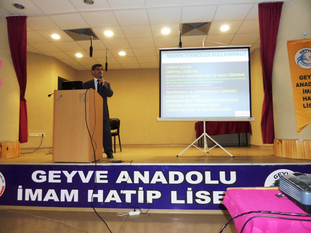 Geyve İmam-Hatip Lisesi salonunda düzenlenen semineri YEĞİTEK Genel Müdürlüğü İçerik ve Yayın Bölümü EBA uzmanı Yücel Çetin verdi.