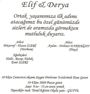 Elif İleri ile Derya Dardağan,cumartesi akşamı yapılan kına gecesini müteakip pazar günü yapılan düğün cemiyetinden sonra dünya evine girdiler.