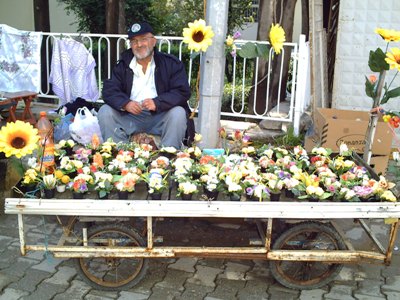 Geyve İlçesi Yörükler mahallesinde ikamet etmekte olan Hüseyin ATEŞ(60) aldığı emekli maaşı yetmeyince gece ve gündüz kahvehane önlerinde ayakkabı boyacılığının yanı sıra hafta günü olan perşembe günleri yapma çiçek satarak ekmek parası kazanmağa çalışıyor.
