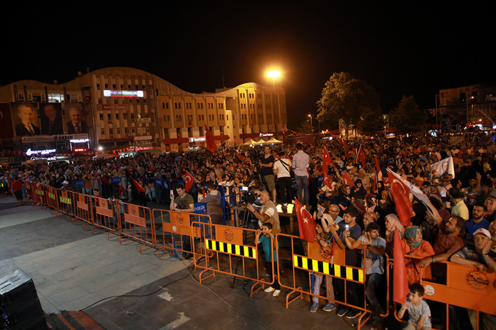 Başkan Toçoğlu, “Darbenin üzerinden 1 yıllık bir süre geçti. Hemşerilerimiz işin ciddiyetinin farkında. Hain darbecilere geçit vermeyeceğimizi, hükümetimizin bu hainlerle sürdürdüğü mücadelede yanında olduğumuzu ve tüm gücümüzle desteklediğimizi gösteriyoruz. Bu meydanda tüm hemşerilerimizle birlikte darbeyi ve darbecileri bir kez daha lanetliyor, bu gibi ihanetlere her zaman direneceğimizi ifade etmek istiyorum” ifadelerini kullandı.