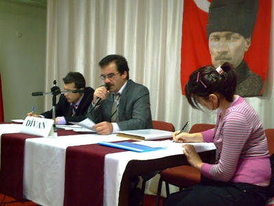 Geyve Lisesi Müdürü Erol Erdem Divan başkanı olarak konuşma yaparken