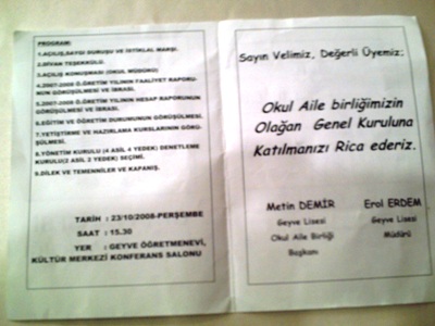 Velilere gönderilen davetiyelerden biri