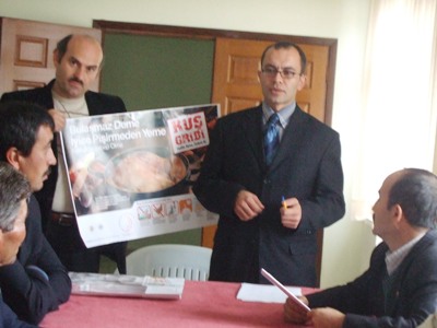 ilçe tarım müdürü Alper Sezer muhtarlarla Kuş gribi toplantısı yaptı