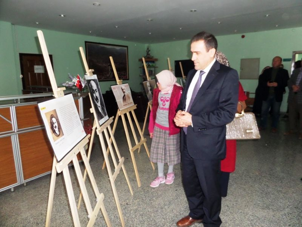 Protokol, Mehmet Akif'le ilgili resim sergisini gezdikten sonra; görevli öğretmen ve öğrencileri tebrik edip hatıra fotoğraf çektirdiler.