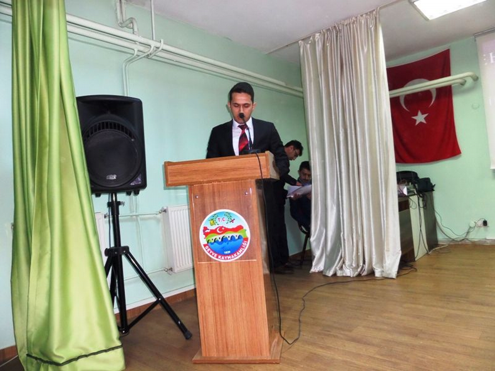 Saygı duruşu ve İstiklal Marşından sonra öğretmen Gökhan Er, günün anlam ve önemini belirten bir konuşma yaptı.