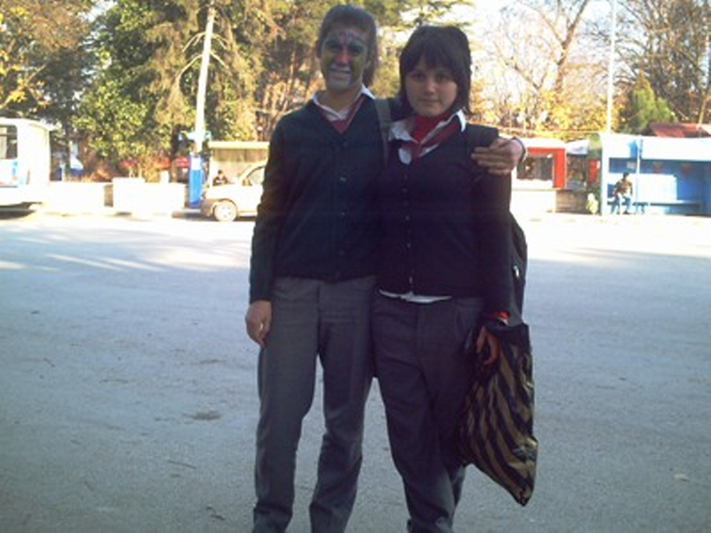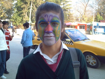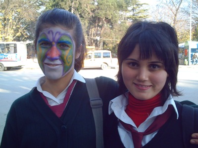 Arkadaşının yüzüne kelebek resmi yapan H. Ö.