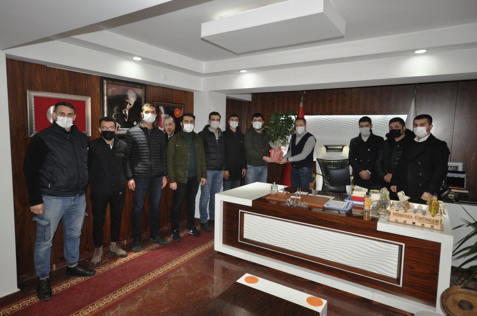 AK Parti Geyve Gençlik Kolları başkanı Ö. Furkan Gökmen ve arkadaşları Geyve Belediye başkanı Murat Kaya’yı makamında ziyaret ettiler.