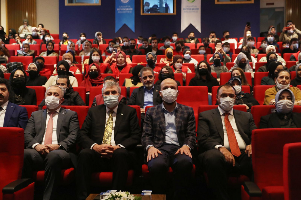 Bir dizi ziyaretlerde bulunmak üzere Sakarya’ya gelen İlim Yayma Vakfı Mütevelli Heyeti Başkanı Bilal Erdoğan AKM’ de ‘Gençlik Ruh İşidir’ sloganıyla düzenlenen ‘Sakarya Gençlik Buluşması’ programına katıldı. Gençlerin yoğun ilgi gösterdiği programda Büyükşehir Belediye Başkanı Ekrem Yüce’nin yanı sıra Sakarya Valisi Çetin Oktay Kaldırım, AK Parti Milletvekili Çiğdem Erdoğan Atabek, AK Parti İl Başkanı Yunus Tever, SAÜ Rektörü Prof. Dr. Fatih Savaşan, SUBÜ rektörü Prof. Dr. Mehmet Sarıbıyık, SİMDER Yönetim Kurulu Başkanı Yahya Bakır da yer aldı. Söyleşi şeklinde gerçekleşen programda Bilal Erdoğan, gençlere geleceğin Türkiye’si için çok çalışarak, hayallerinin peşinde koşmaları gerektiğini ifade etti. Erdoğan, ayrıca sorularına cevap verdiği Sakaryalı gençlerle fikirlerini paylaştı. Başkan Yüce, program sonunda Erdoğan’a Sakarya’yı simgeleyen hediyeler takdim etti.