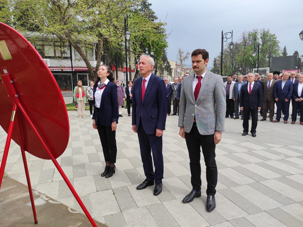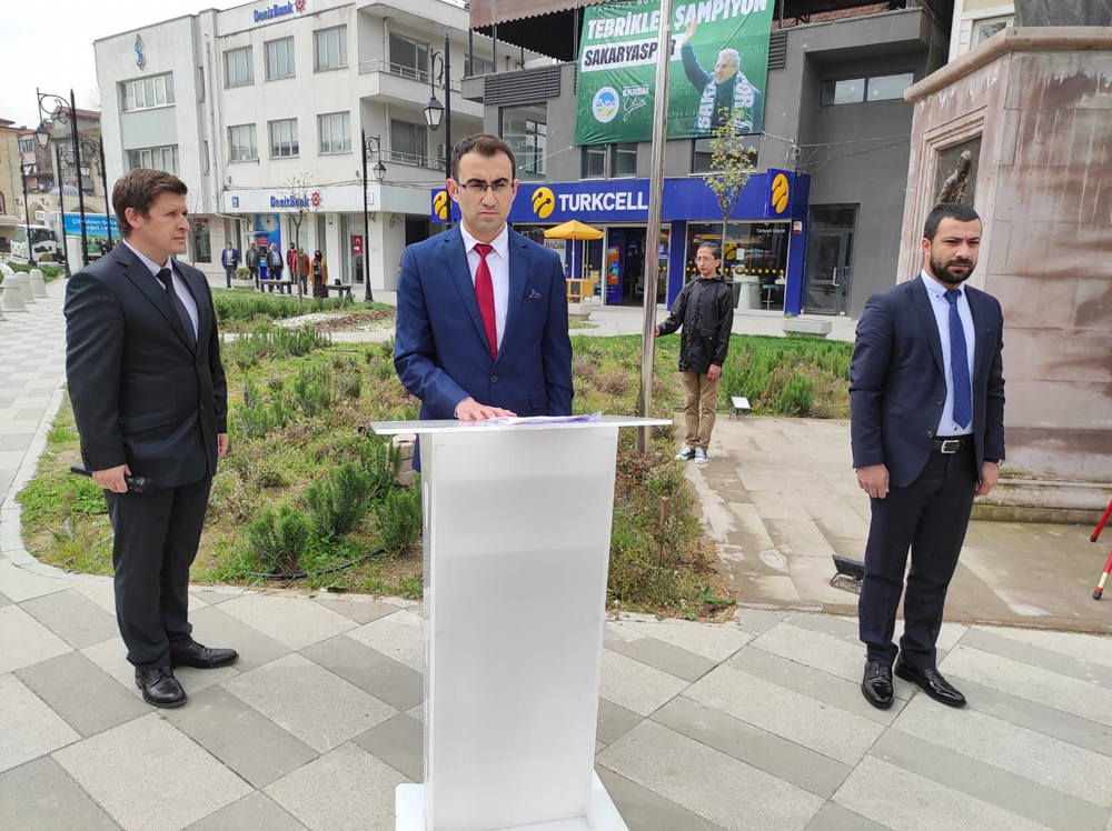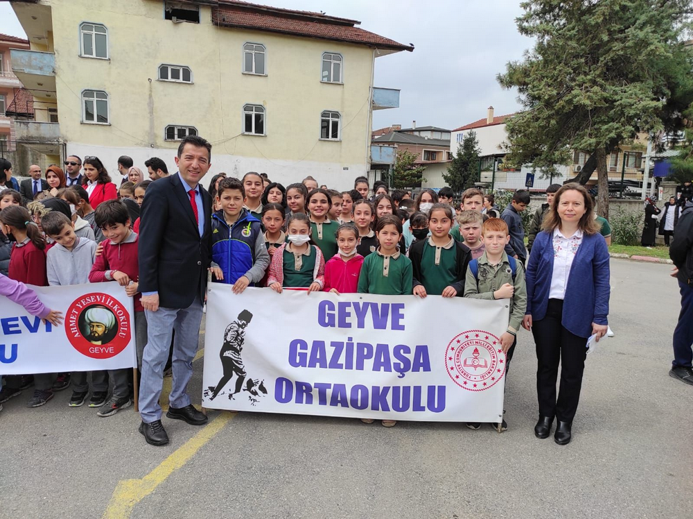 Geyve Milli Eğitim Müdürü Mehmet Doğan, Cumhuriyet Meydanındaki Atatürk anıtına çelenk sunmasıyla başlayan program; Atatürk Ortaokulunu bahçesinde devam etti.