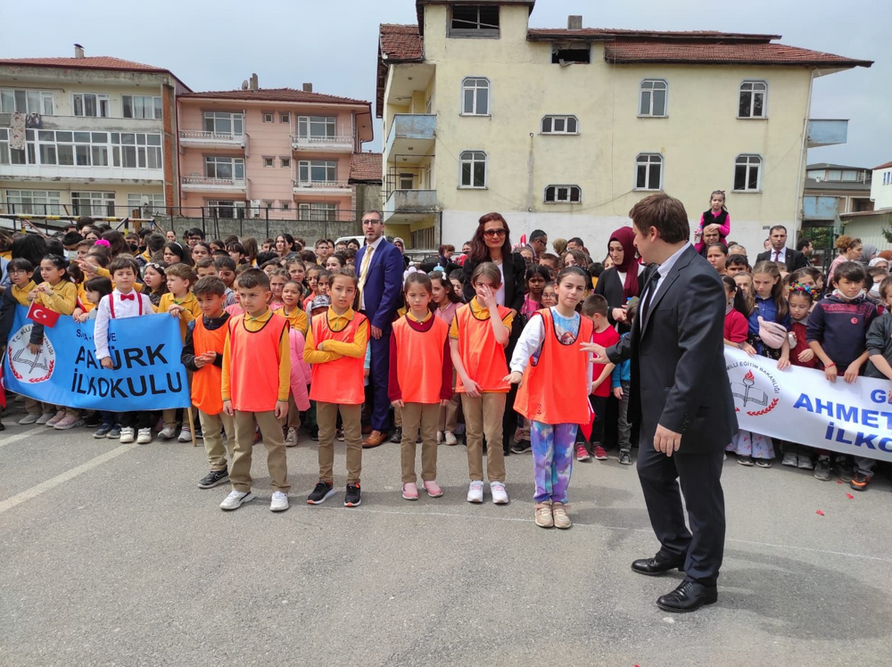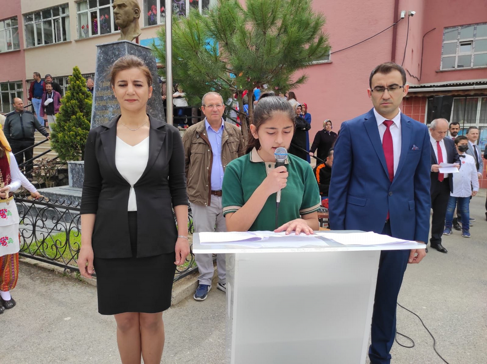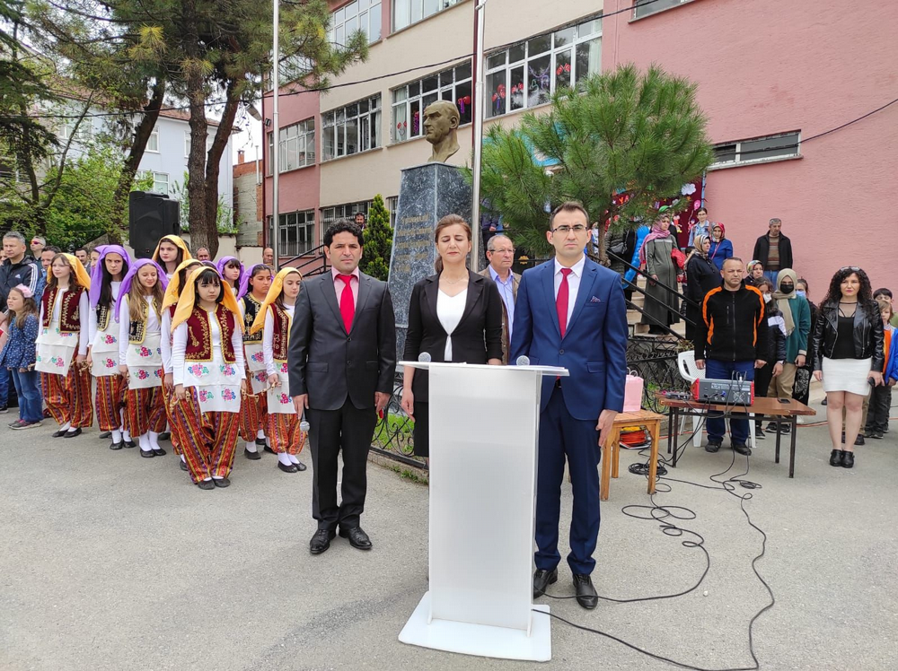 Programın sunuculuğunu Ali İhsan Can ve Ayşe Dereli öğretmenler başarıyla yaptı. Atatürk Ortaokulu müdürü Mehmet Çelik, günün anlam ve önemi hakkında kısaca şunları söyledi: Sevgiye, kardeşliğe ve bilime açılan kapı olan ve gururla kutladığımız 23 Nisan Ulusal Egemenlik ve Çocuk Bayramı; Gazi Mustafa Kemal Atatürk’ün geleceğimizin teminatı olan çocuklarımıza oln güven ve sevgisini göstermektedir. Öğrenciler şiirler okudu.