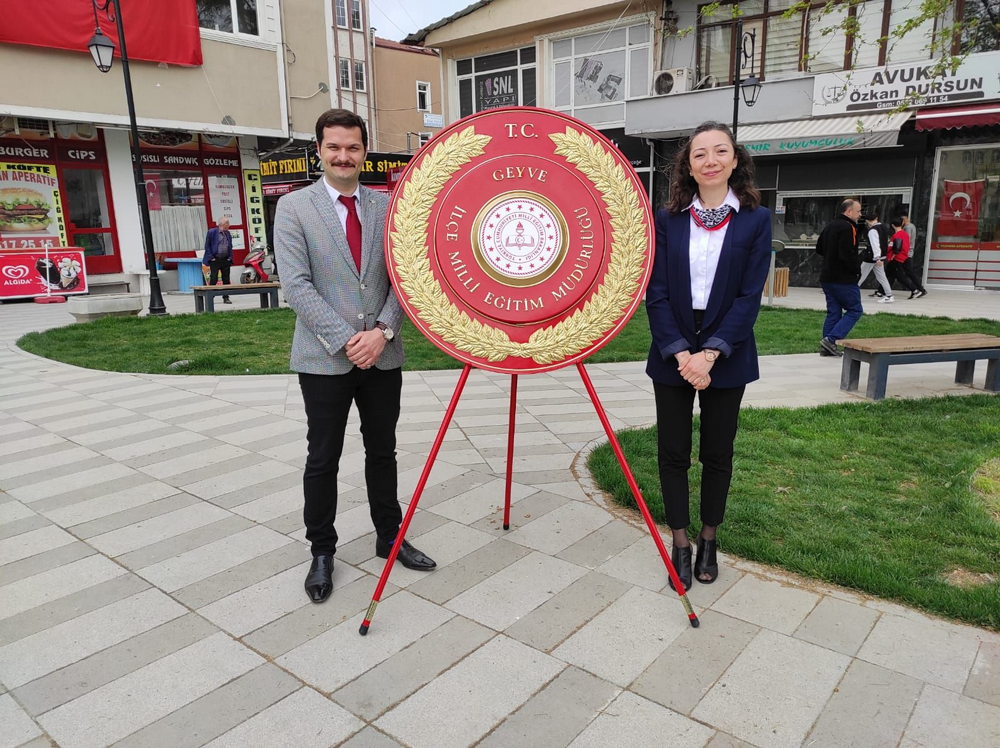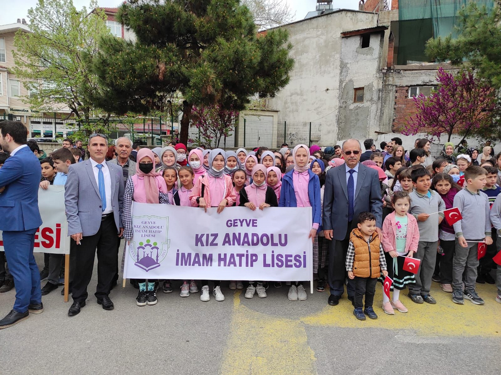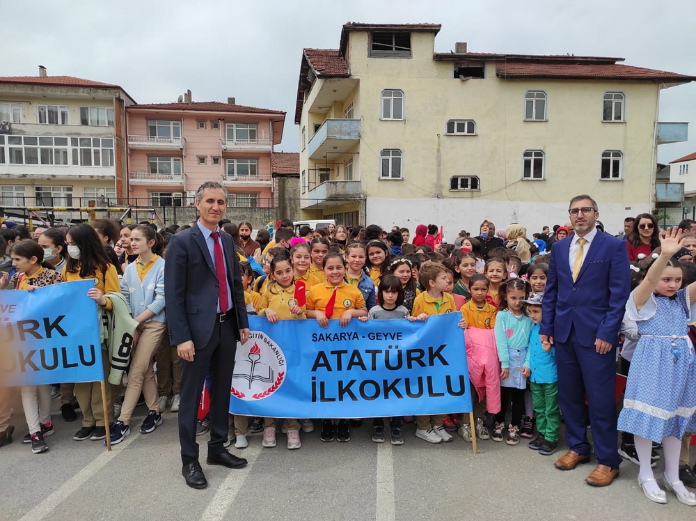 23 Nisan Ulusal Egemenlik ve Çocuk Bayramına Geyve Kaymakamı Murat Güven, Belediye Başkanı Murat Kaya, Cumhuriyet Başsavcısı Gamze Boyraz, Siyasi Parti Temsilcileri, Milli Eğitim Müdürü Mehmet Doğan, İlçe Jandarma Komutanı Üsteğ. Mehmet Kütük, Emniyet Müdürü Mustafa Kökağaç, ilçe Müftüsü Murat Okuyar, daire amirleri, okul müdürleri, öğretmenler, öğrenciler ve çok sayıda vatandaş katıldı.