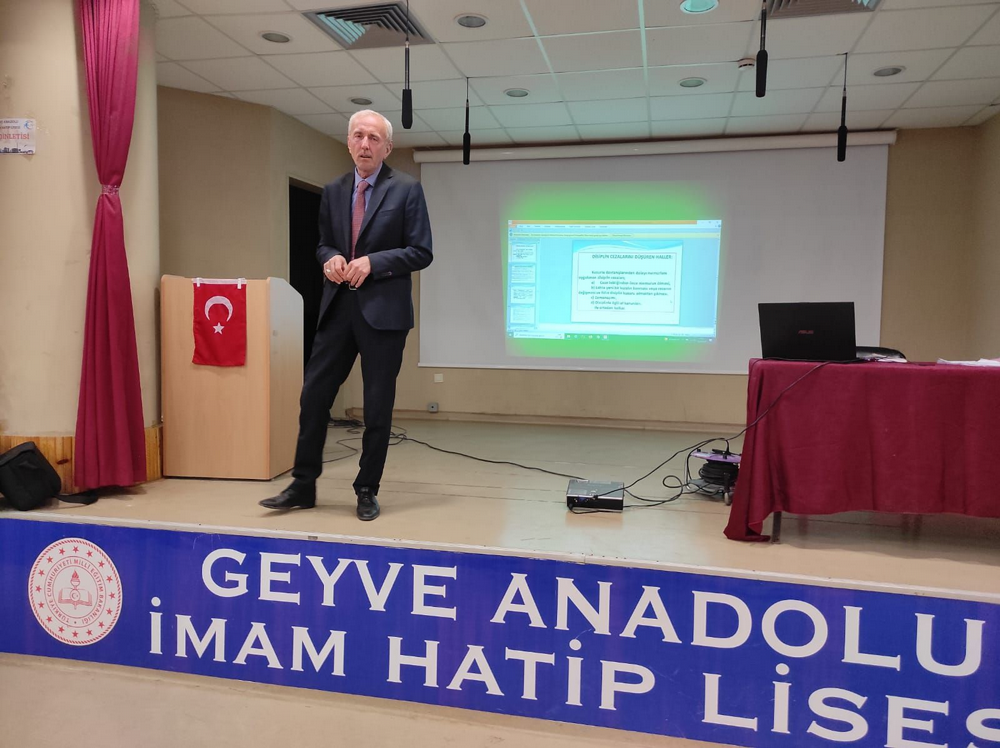 Hizmet İçi Eğitim Birimi tarafından planlanan YÖGEP semineri, Geyve Anadolu İmam Hatip Lisesi salonunda okul müdürlerinin katılımıyla devam ediyor. Seminerde Geyve Milli Eğitim Müdürü Mehmet Doğan konuşma yaptı. Eğitim yöneticilerinin sorumluluklarını kapsayan konular anlatıldı. Seminerde şu konular anlatılıyor: