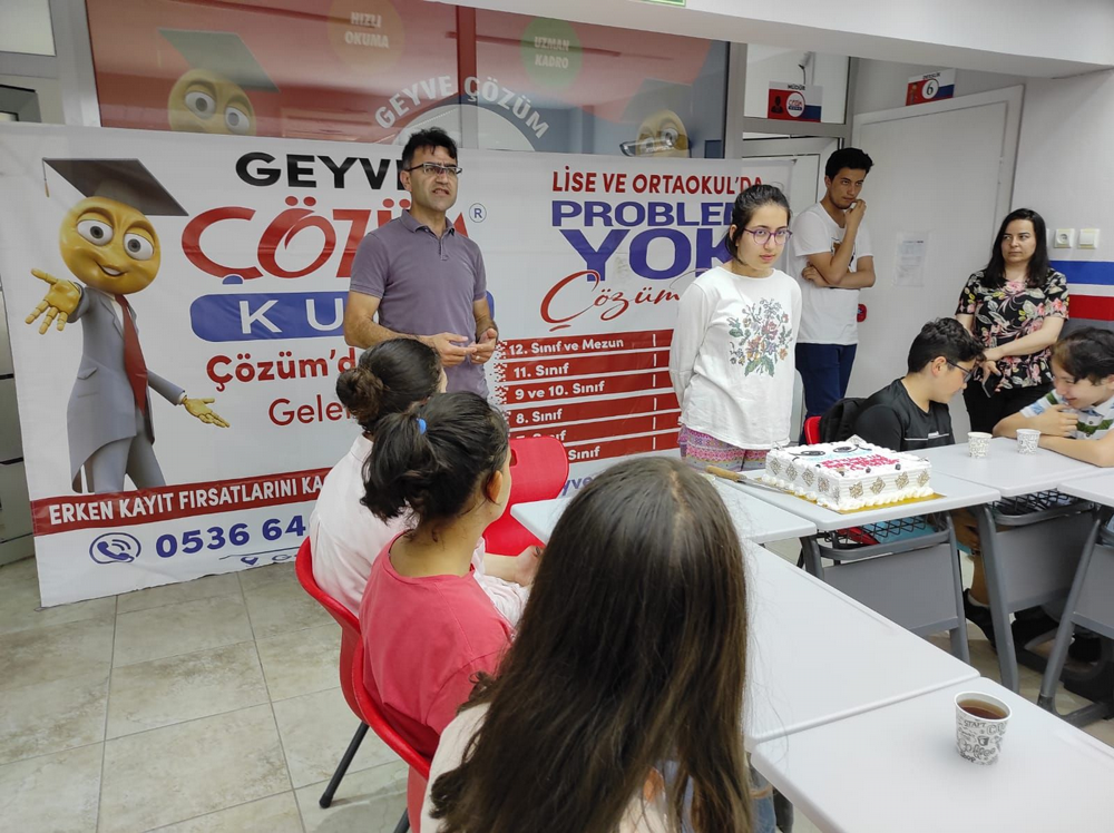 Geyve Özel Çözüm Kişisel gelişim Kursu, öğrencilere pasta ikram ederek tatile girdi.