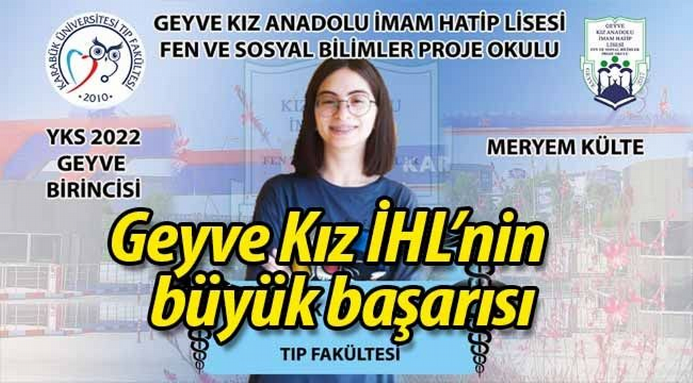Üniversitelere yerleştirme sonuçlarının açıklanmasıyla birlikte gözler; okulların üniversitelere yerleştirme oranlarına, kazandırdığı öğrencilere, öğrencilerin kazandığı bölümlere çevrildi. Geyve Kız Anadolu İmam Hatip Lisesi de bu yıl Geyve'de ilkleri başardı. Yıllar sonra Geyve'deki bir okuldan Tıp Fakültesi kazanan öğrenci oldu.