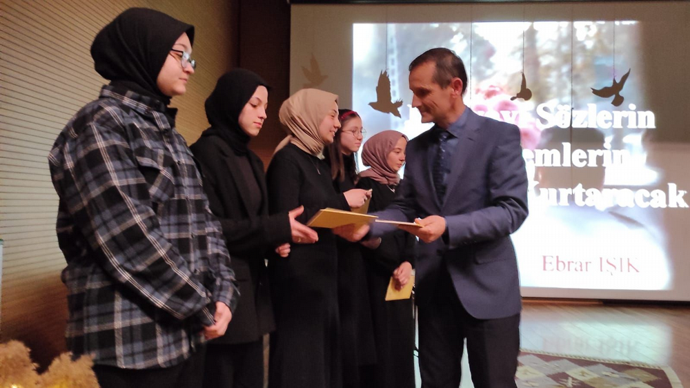 Geyve Şehit Serdar Gökbayrak Kız Anadolu İmam Hatip Lisesi öğrencileri, geleneksel 9. şiir dinletisinde "Şiir Hayatın Çiçek Açan Dilidir." dediler.