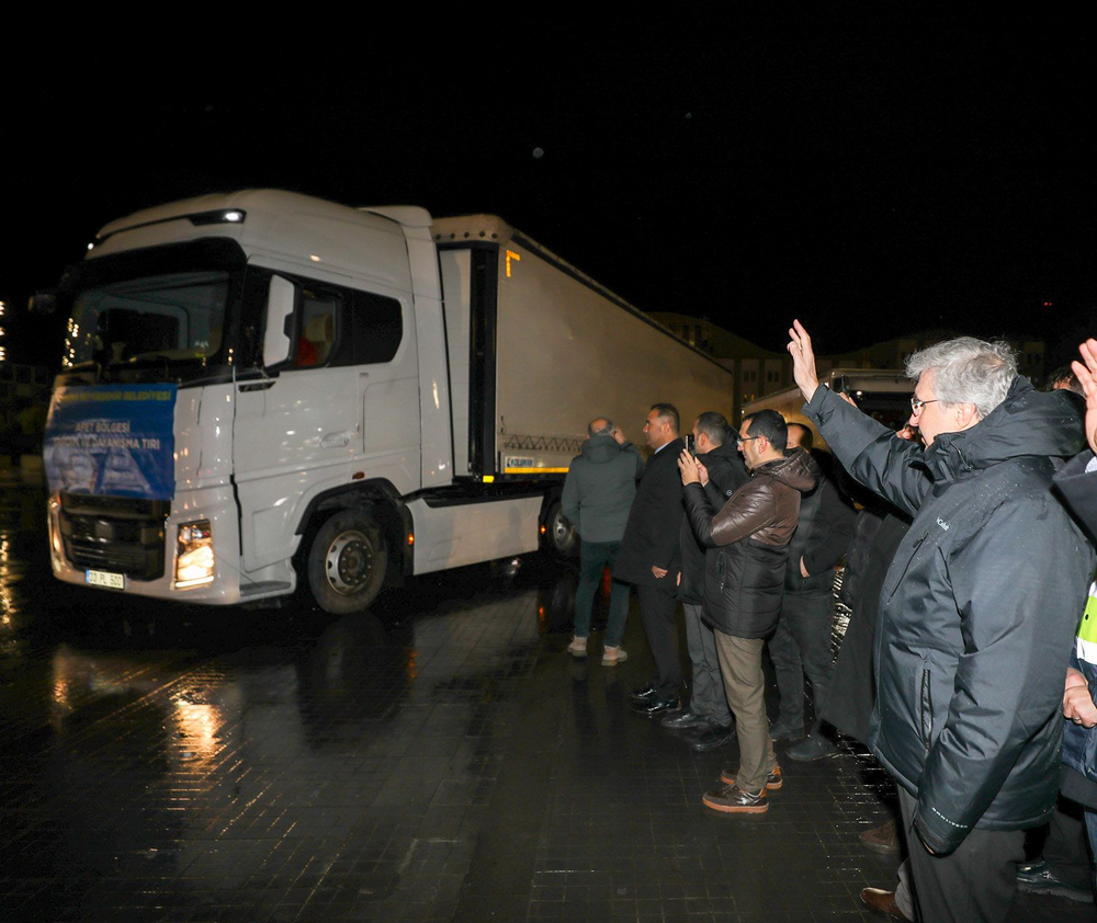 Battaniye, çadır, ısıtıcı, temizlik malzemesi, hijyen, kuru gıda, içlik, termal kıyafet, çocuk bezi, bebek maması gibi ürünleri taşıyan yardım konvoyu Kahramanmaraş, Adıyaman, Hatay başta olmak üzere toplamda 10 ile dağıtılmak üzere yola çıktı.