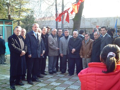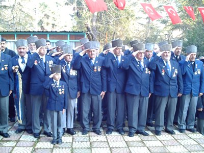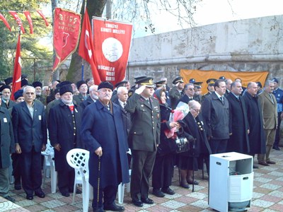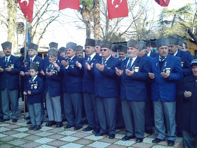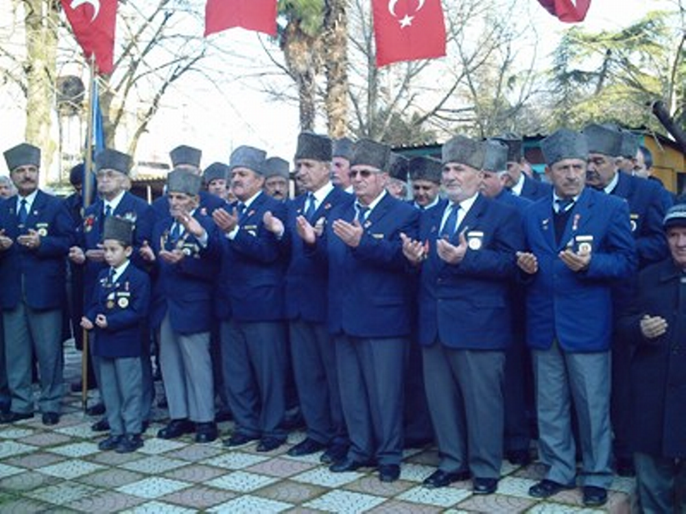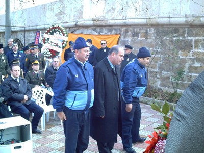 Şehit aileleri ve Muharip gaziler derneği çelenk koyarken