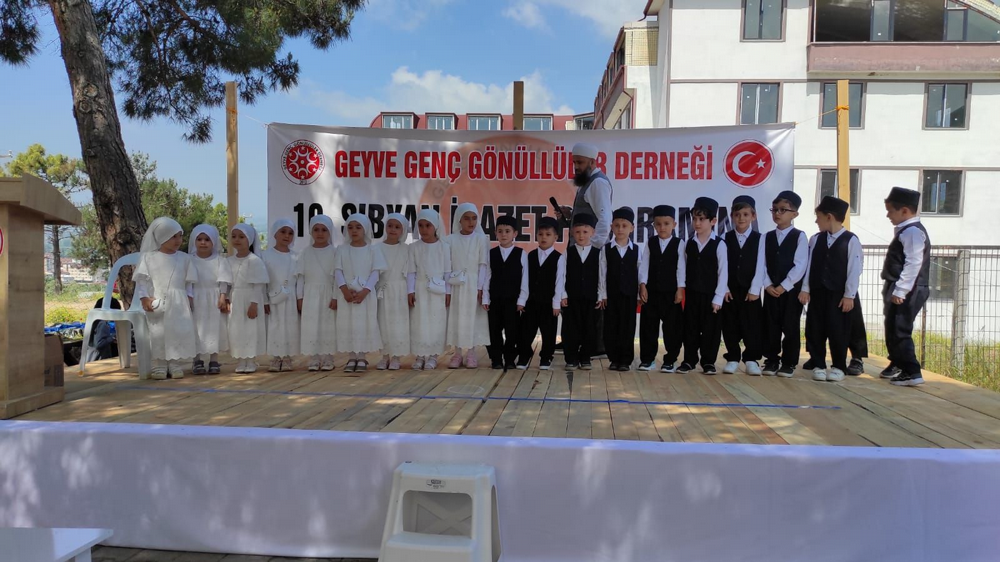 Geyve Genç Gönüllüler Derneğinin Eşme’deki medresesinin bahçesinde düzenlenen programa; görevli hocalar, 6 yaş grubu öğrenciler ve çok sayıda veliler katıldı.