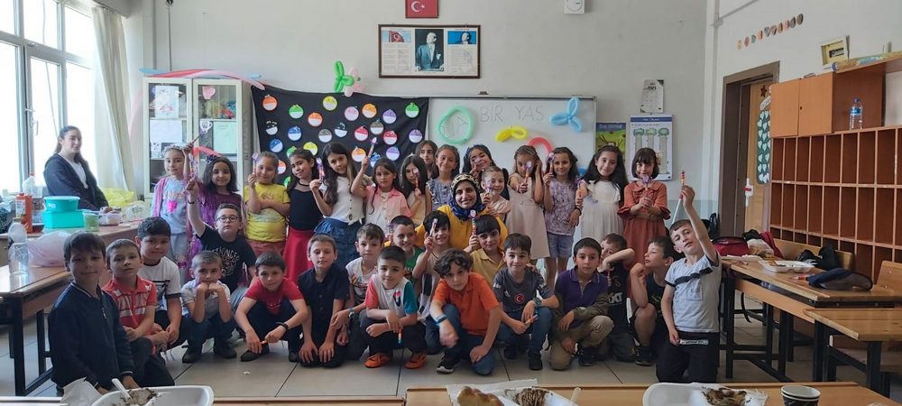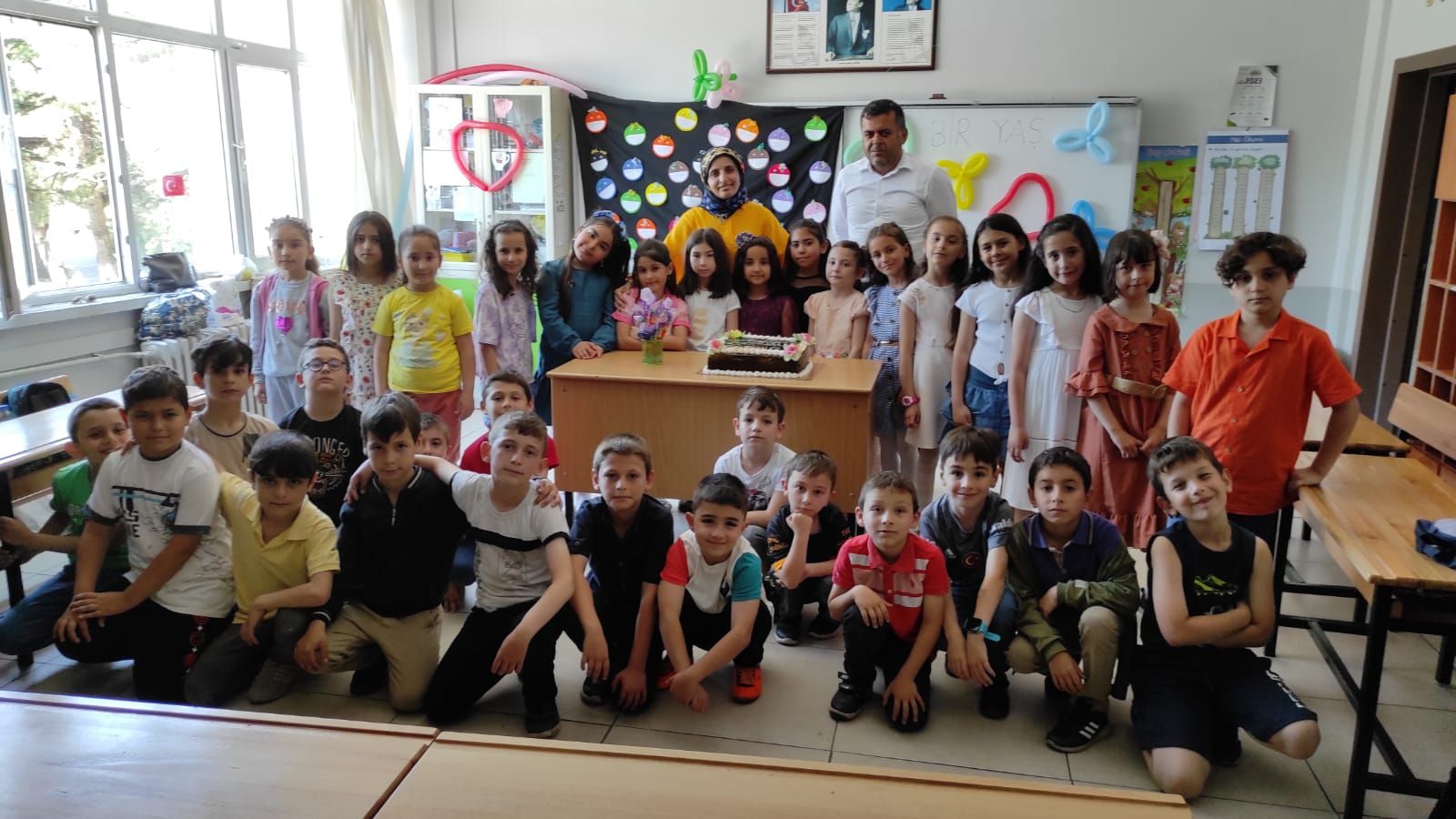 Zübeyde Demirtaş öğretmen, sınıfının öğrencilerinin bir yaş daha büyüdüğünü söyleyerek, öğrencileriyle beraber yaş pasta kesiler. Okul müdürü Resul Günbilek başarılarının devamını diledi.