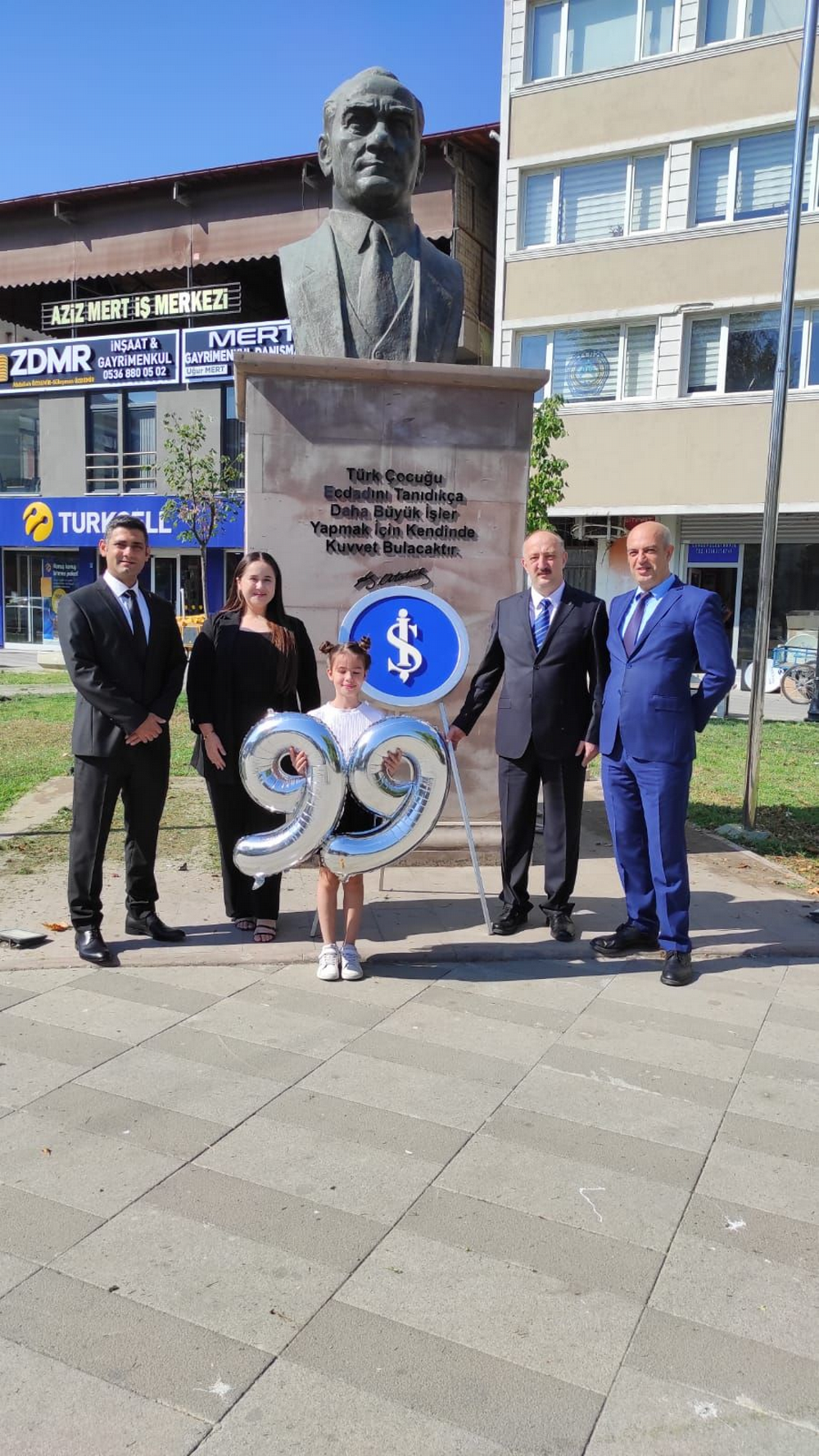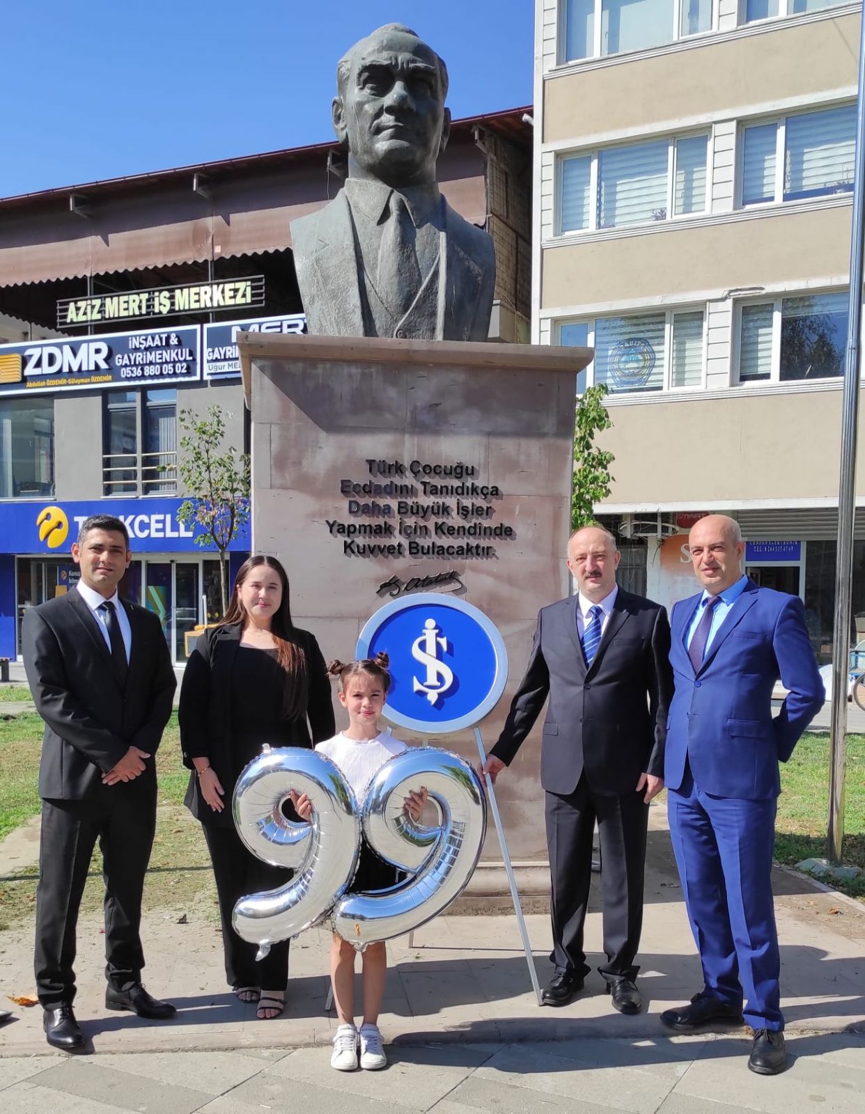 Geyve’deki çelenk sunma törenine; İş Bankası Geyve Şubesi KOBi yetkilisi Fehmi Özkaraca ve minik kızı misafir Bilge Özkaraca, Bireysel yetkilisi Doğan Yıldırım Dalgıç, gişe görevlisi Betül Beştepe ve güvenlik görevlisi Alaattin Aydın katıldı ve konuyla ilgili şunları söylediler: