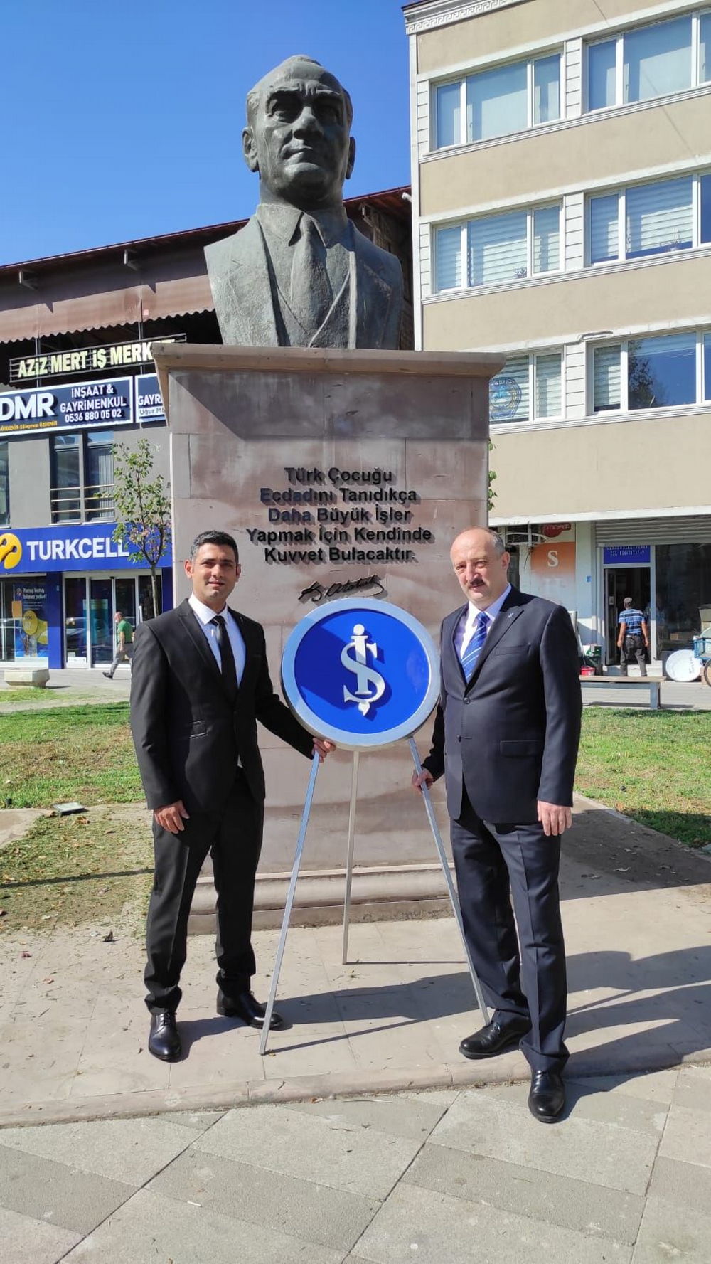 Geyve İş Bankası personeli, Türkiye İş Bankası’nın 99. kuruluş yıldönümü dolayısıyla Geyve Cumhuriyet Meydanı’nda bulunan Atatürk anıtına çelenk sundular ve saygı duruşunda bulundular.
