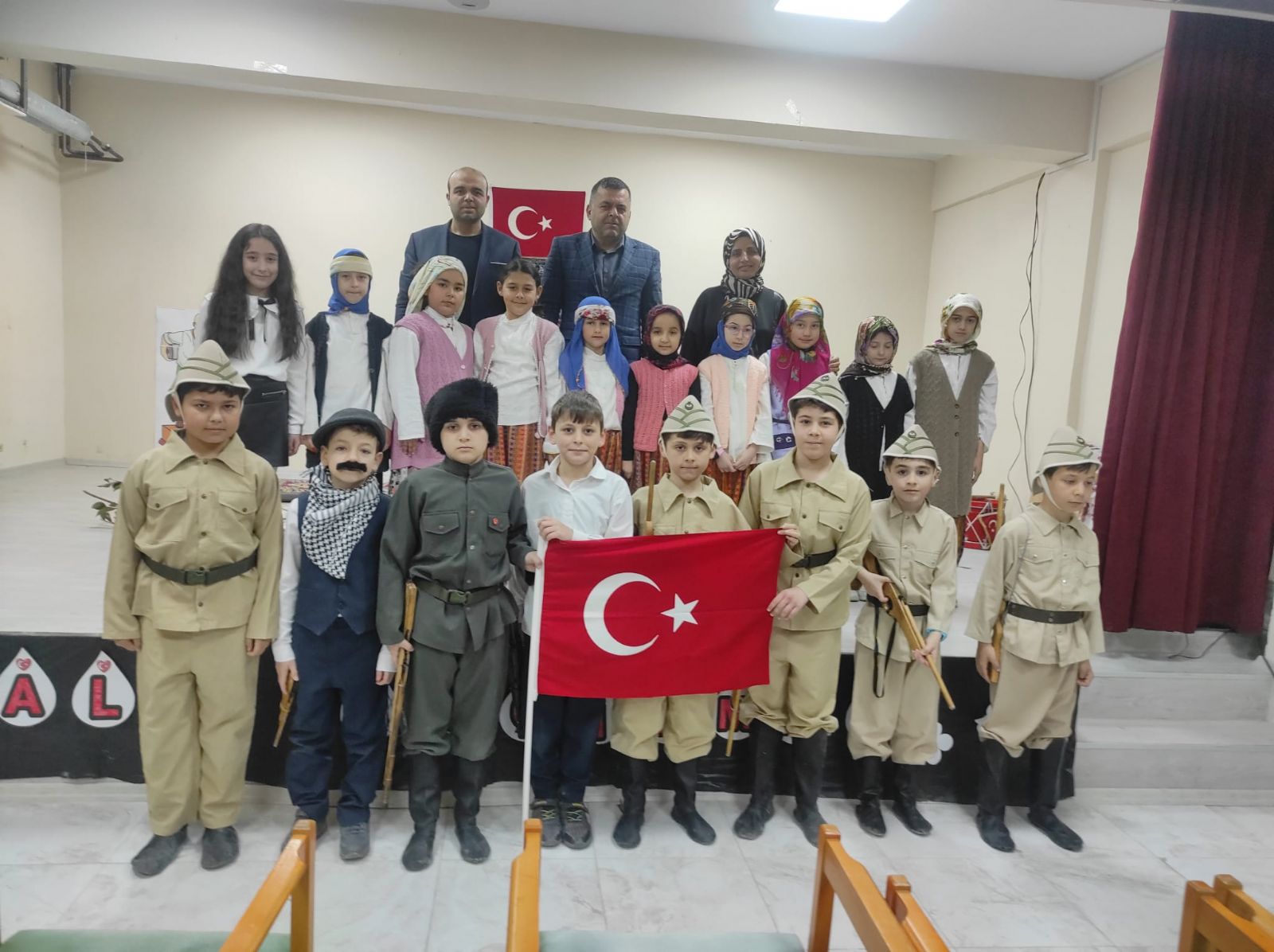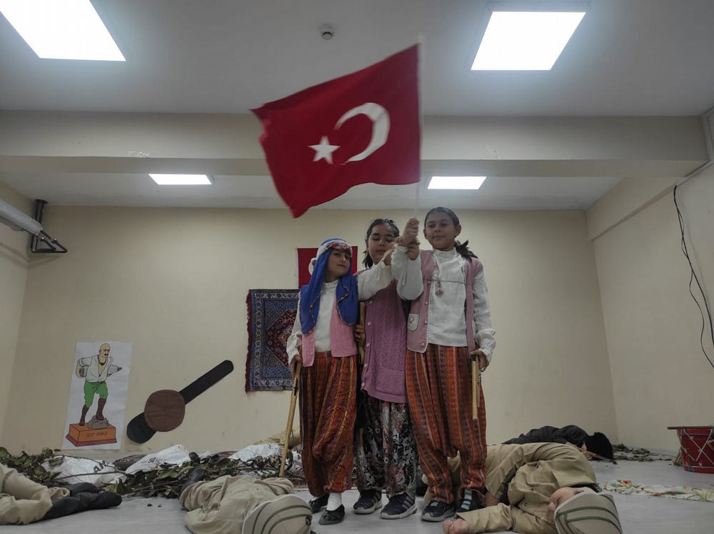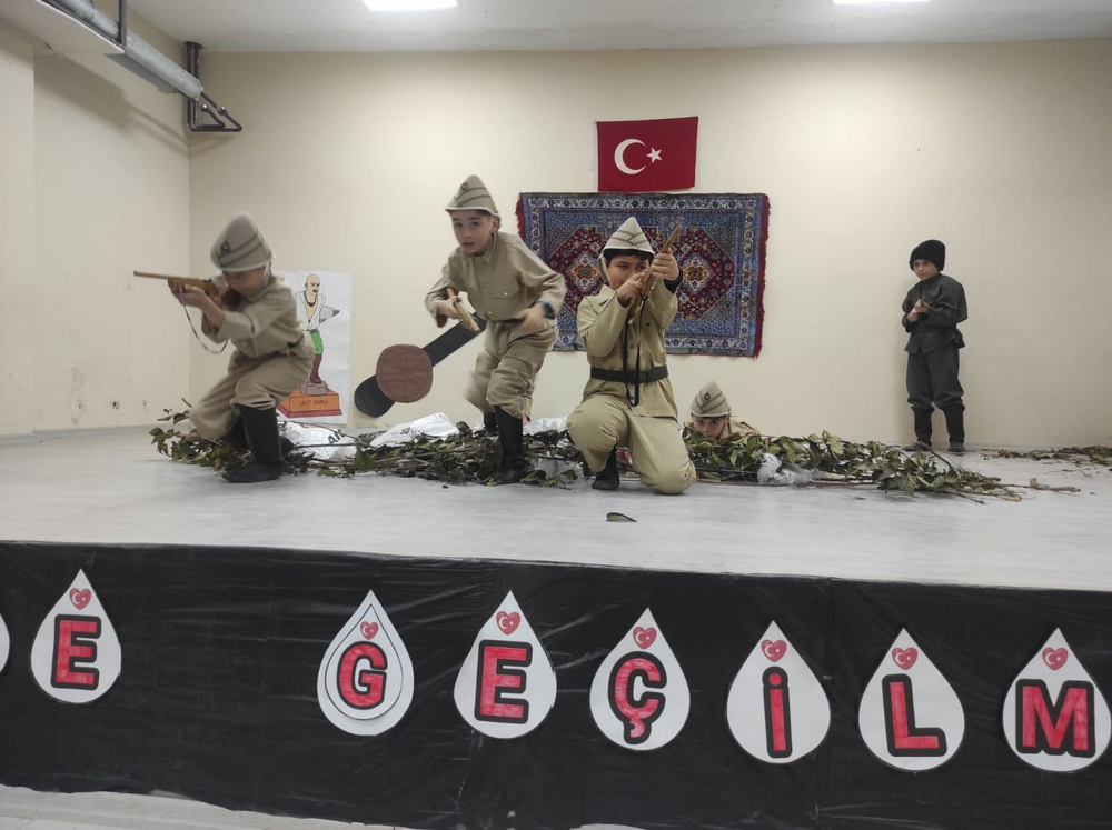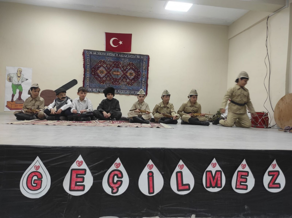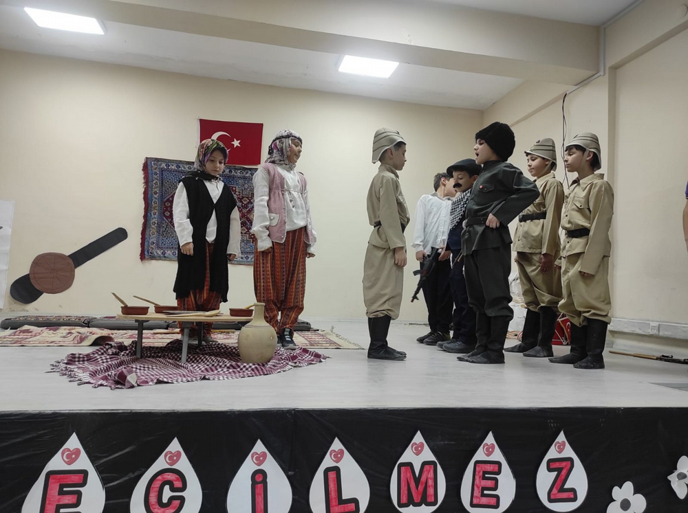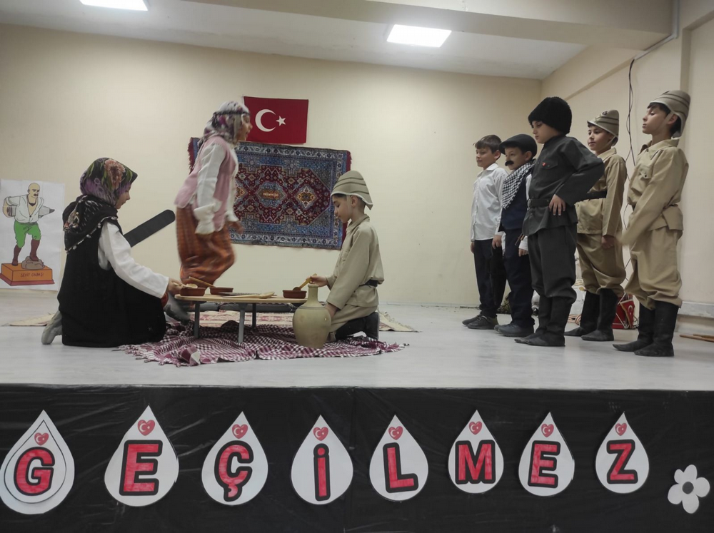 Çanakkale Zaferinin 109.yıl dönümü dolayısıyla hazırlanan oyunu okul müdürü Resul Günbilek, müdür yardımcısı Ali Yıldırım, öğretmenler ve öğrenciler izledi. Düğün yapmak üzere olan gencin, Çanakkale Savaşına gidişi ve ordaki kahramanlıkları anlatan oyunu seyirciler çok beğendi. Okul müdürü Resul Günbilek, başarılarından dolayı öğretmen ve öğrencilri tebrik etti.