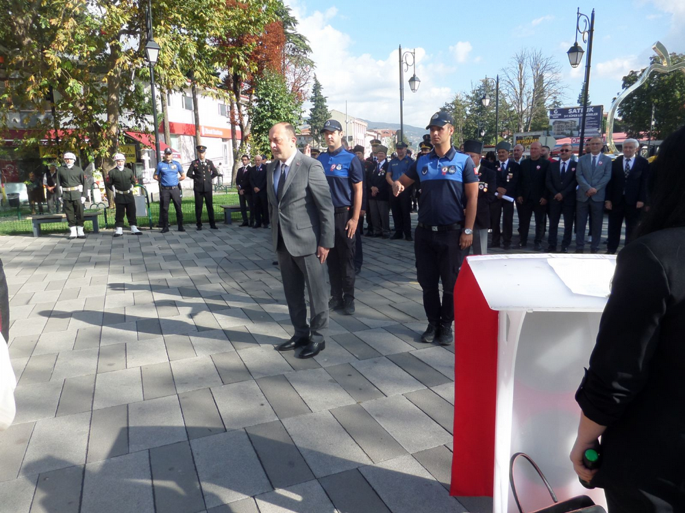 Tören, saygı duruşu ve İstiklal Marşı'nın okunmasıyla başladı. Ardından İlçe Kaymakamı Murat Güven, Garnizon Komutanı Personel Üsteğmen Latif Altun, Belediye Başkanı Selçuk Yıldız ve Muharip Gaziler Derneği Başkanı Ekrem Uysal, Atatürk anıtına çelenk sundu.