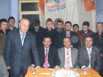 “Tanıtım toplantımıza hoş geldiniz. İl Genel Meclisi adaylarımız; Şükrü Çelik, Neşet Çakır, Metin Kolat arkadaşlarımızdır. Bizlerin köylere yönelik yaptıklarımızı soruyorlar. Köy yollarının %45 i asfalt yapılmış idi,%100e çıkardık. Yol su problemi olan köy kalmadı. Bir çok köyümüzde kanalizasyon sorununu çözdük. Hizmetlere devam için bize güç vermenizi istiyoruz.”