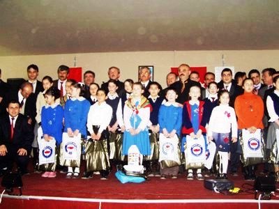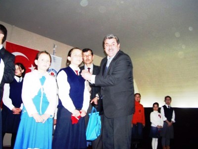 Dereceye giren öğrencilere birer altın ve çeşitli hediyeler verildi.
