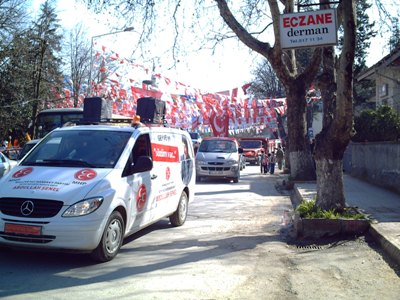 Milliyetçi Hareket Partisi Geyve İlçe teşkilatı Belediye başkan adayı Abdullah Şenel, Sakarya İl genel meclis Üyesi adayları, Belediye meclis üyeleri ve vatandaşlarla beraber, MHP Seçim Bürosu önünden başlatmış olduğu araç konvoyu ile Geyve'yi dolaşarak yine seçim bürosuna döndü.