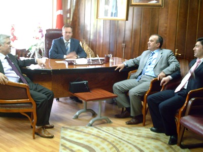 Başkan Kaya'nın bugünkü konukları İl Çevre ve orman müdürü Nurettin Taş, sanayi ve ticaret İl müdürü Özcan Keskin ve Vergi dairesi başkanı Recep Alp idi.