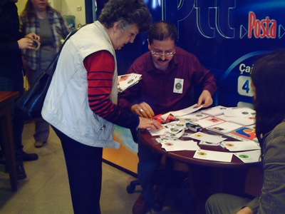 Görevli, pul koleksiyoncusu olan bir hanıma bilgi veriyor