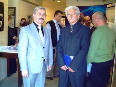 Koordinatör Erdoğan Şen (sakallı) Pamukova PTT Müdürü Turgut Baya'ya bilgi veriyor