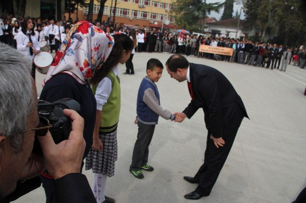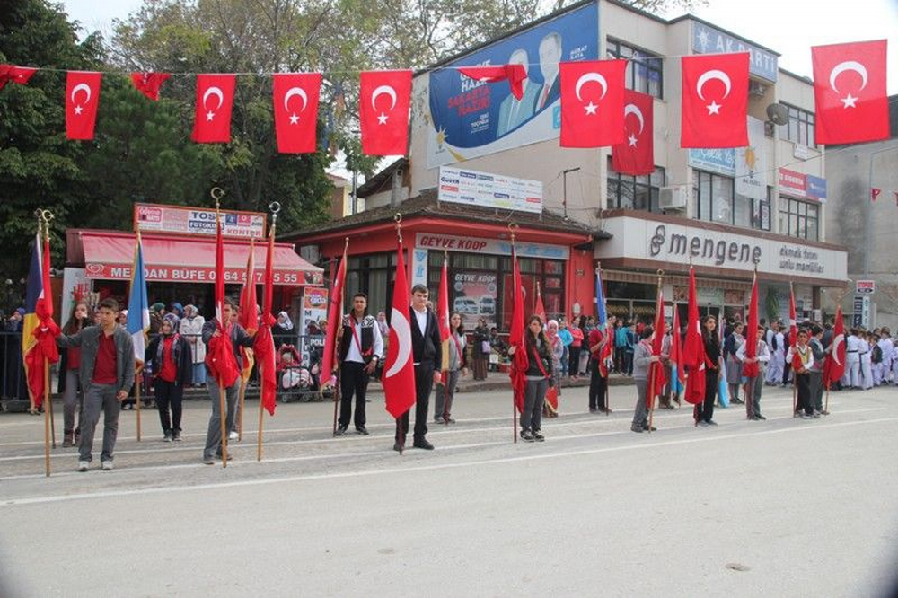 Cumhuriyet Alanındaki kutlamalar; Kaymakam İdris Akbıyık, Garnizon Komutanı y. As Şb: Başk. Personel Üstğm. Taner Çolak, Belediye Başkanı Murat Kaya’nın vatandaşların ve öğrencilerin bayramlarını kutlamaları ile başladı. Saygı Duruşu ve birlikte söylenen İstiklal Marşından sonra, Kaymakam Akbıyık günün anlam ve önemini anlatan bir konuşma yaptı.