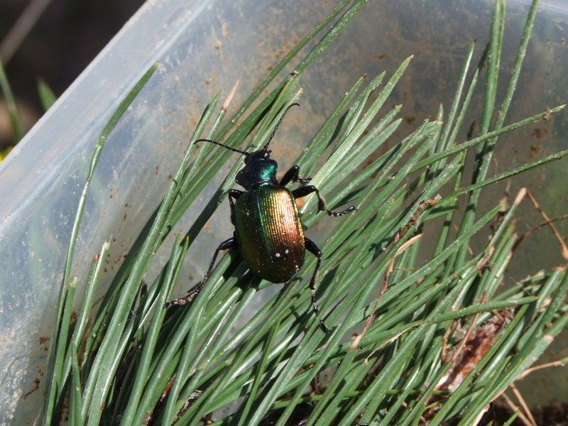Böcek salma çalışmalarının yapıldığı ormanlık sahada, ergin olarak yaşayan ve çam kese böceği yuvalarında avlanan Calosoma böceği ile karşılaşan görevliler önce çok şaşırdılar sonrada sevindiler.