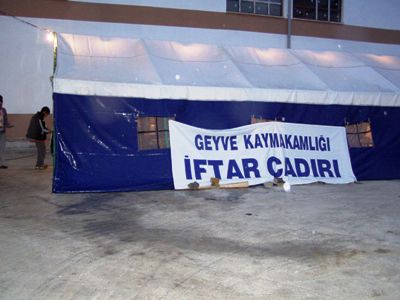 Geyve Kaymakamlığı Sosyal Yardımlaşma ve Dayanışma Vakfı 2007 Yılı Ramazan Ayı münasebetiyle Hükümet Konağı arkasında öğrencilere ve halka oruçlarını açması adına İftar Çadırı kurdu. Ramazan Ayı boyunca iftar yemeği verilmeye devam edecek.