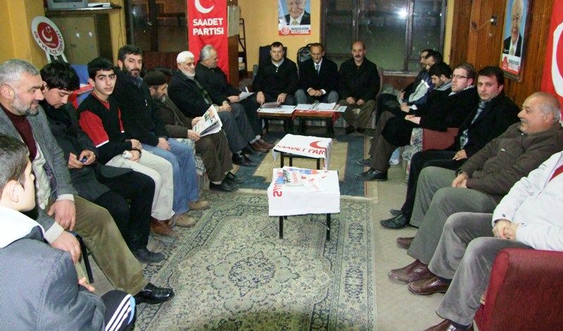 Saadet Partisi Geyve İlçe Başkanı İrfan Tufanoğlu, konuklarına hoş geldiniz dedikten sonra özetle şunları söyledi: “ Türk Siyaset Tarihinde siyasetçilerin bu kadar zenginleştiği bir dönem görülmedi. Yatarak para kazanma devri bitti deyen AKP etrafındakilerin nasıl zengin olduğunu görmüyor. Cumhuriyet Tarihinin en yüksek borcu yapılmıştır. 80 yılda 59 hükümet 210 milyar borç yaptı, AKP 8 yılda borcu 600 milyar dolara çıkardı. Ülkemiz borca teslim edilmiştir. Türk Bankacılık Sektörünü yabancılara sattılar. Petrol Yasası ile petrollerimiz yağmalanıyor. Özelleştirme adı altında milli üretim yok ediliyor. Esnafımız kurulan büyük marketler karşısında işlerini kaybediyor. IMF ile anlaşma yapılmadı doğru çünkü IMF programı uygulanıyor. İşçi memur emekli zam istiyor, %2 zam veriliyor. Refah Yol zamanında %100 zam vermiştik. Saadet İktidarında ABD ile değil D 8 devletleri ile ortak hareket edeceğiz. Türkiye bizimle güldü, yine bizimle gülecek. Alifuatpaşa Beldesinde seçim var. AKP orada yıprandı. Saadet partisi olarak orada seçim karargâhımızı açtık. Alifupaşa’da inşallah 1. parti olarak sonuç alacağız. Alifupaşa’yı Milli Görüş Belediyeciliği ile tanıştıracağız.”