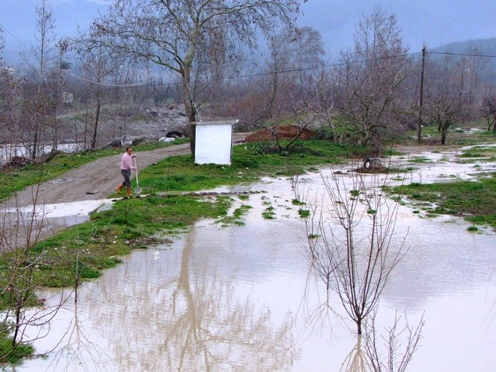 Geyve İlçesi Doğantepe Köyü sınırlarından geçen 'İllet Deresi' taştı ve ayva bahçelerine mıcır ve mıcır tozu taşıdı.